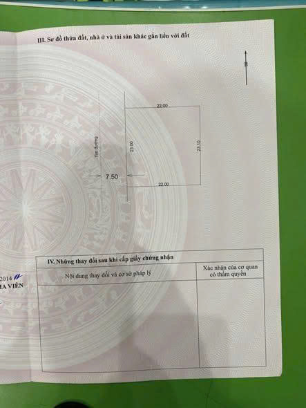 Mặt tiền 23m, sâu 19, 30m . Mặt đường trước nhà rộng 8m đã đổ bê tông dày 20cm