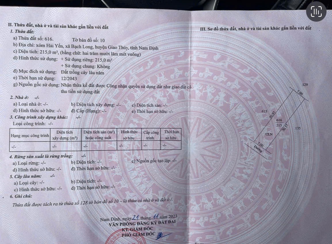 Vị trí :  Diện tích 215m.full cư gần ngay trung tâm ub xã .kcn  hải long nam định nay thuộc ninh Bình đang khởi công