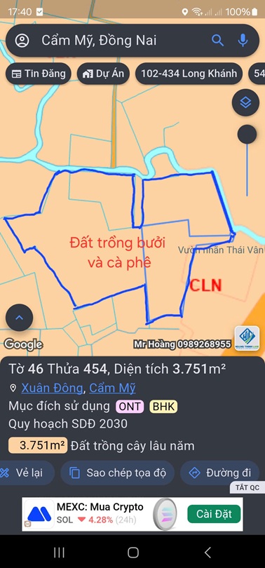 - Đất đang trồng bưởi cách đường TL 765 khoảng 300m Xe Hơi Tới Tận Đất