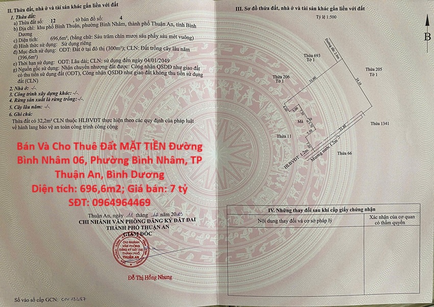 Bán Và Cho Thuê Đất MẶT TIỀN Đường Bình Nhâm 06, Phường Bình Nhâm, TP Thuận An, Bình Dương