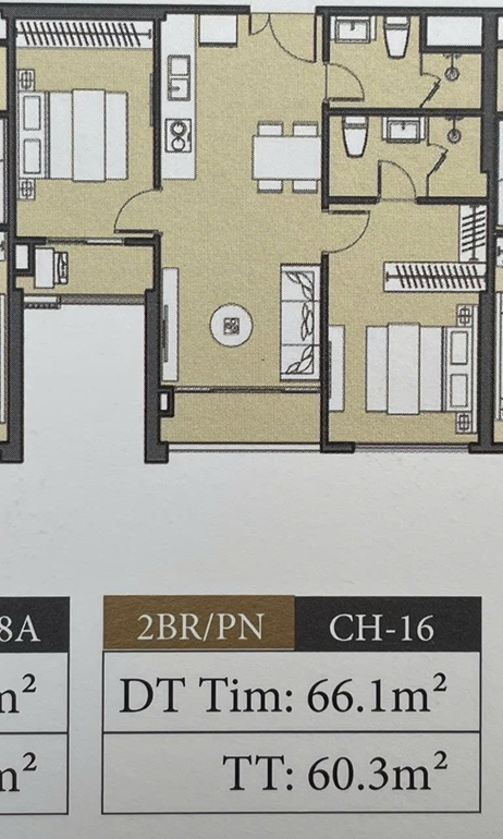 - Kết cấu căn hộ: 2 phòng ngủ, 2 vệ sinh.