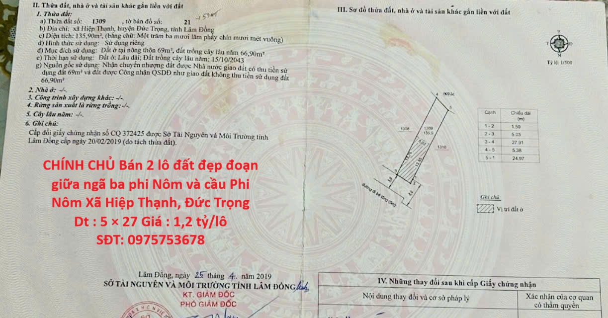 - Giá : 1,2 tỷ/lô (có tl nhẹ)