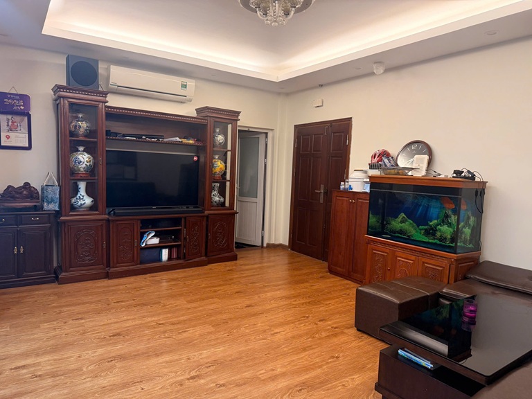 - Kết cấu: 3 phòng ngủ, 2 nhà vệ sinh, 1 phòng khách, 1 phòng bếp; sàn gỗ cả nhà; tủ âm tường (gỗ thịt); giường gỗ thịt; tủ rượu (gỗ thịt); tủ lạnh 2 cánh.