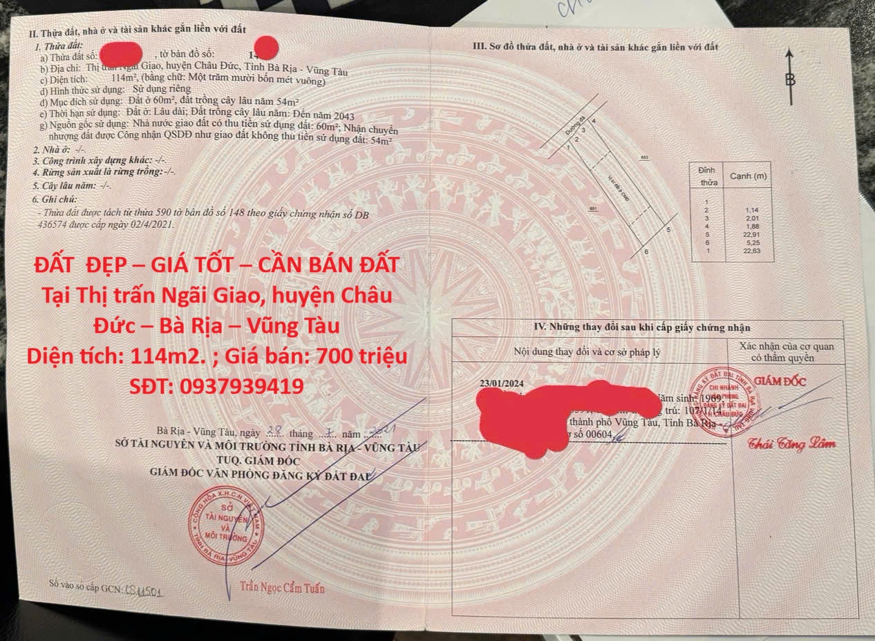 ĐẤT ĐẸP – GIÁ TỐT – CẦN BÁN ĐẤT Tại Thị trấn Ngãi Giao, huyện Châu Đức – Bà Rịa – Vũng Tàu