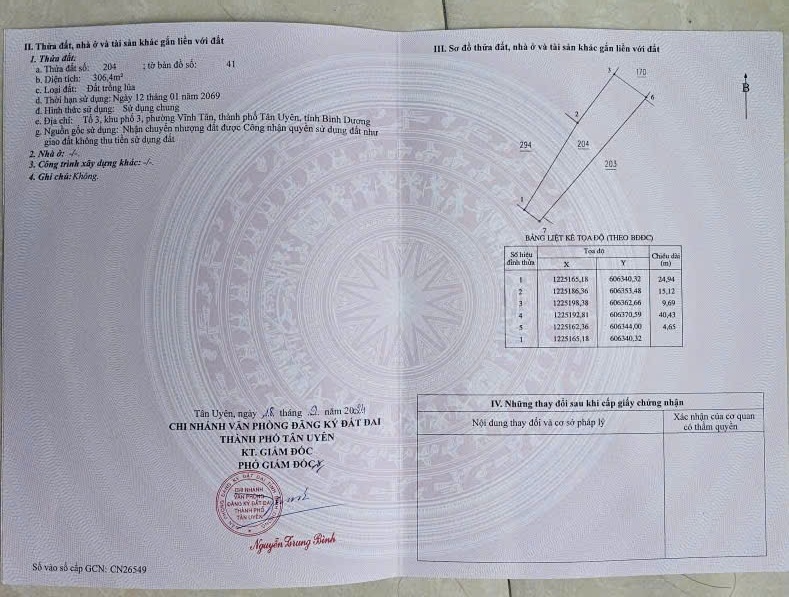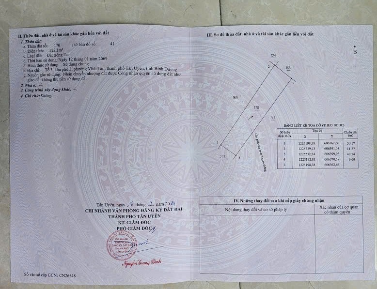 ĐẤT ĐẸP – GIÁ TỐT – CHÍNH CHỦ CẦN BÁN GẤP tại Xã Vĩnh Tân, Thị xã Tân Uyên, Bình Dương