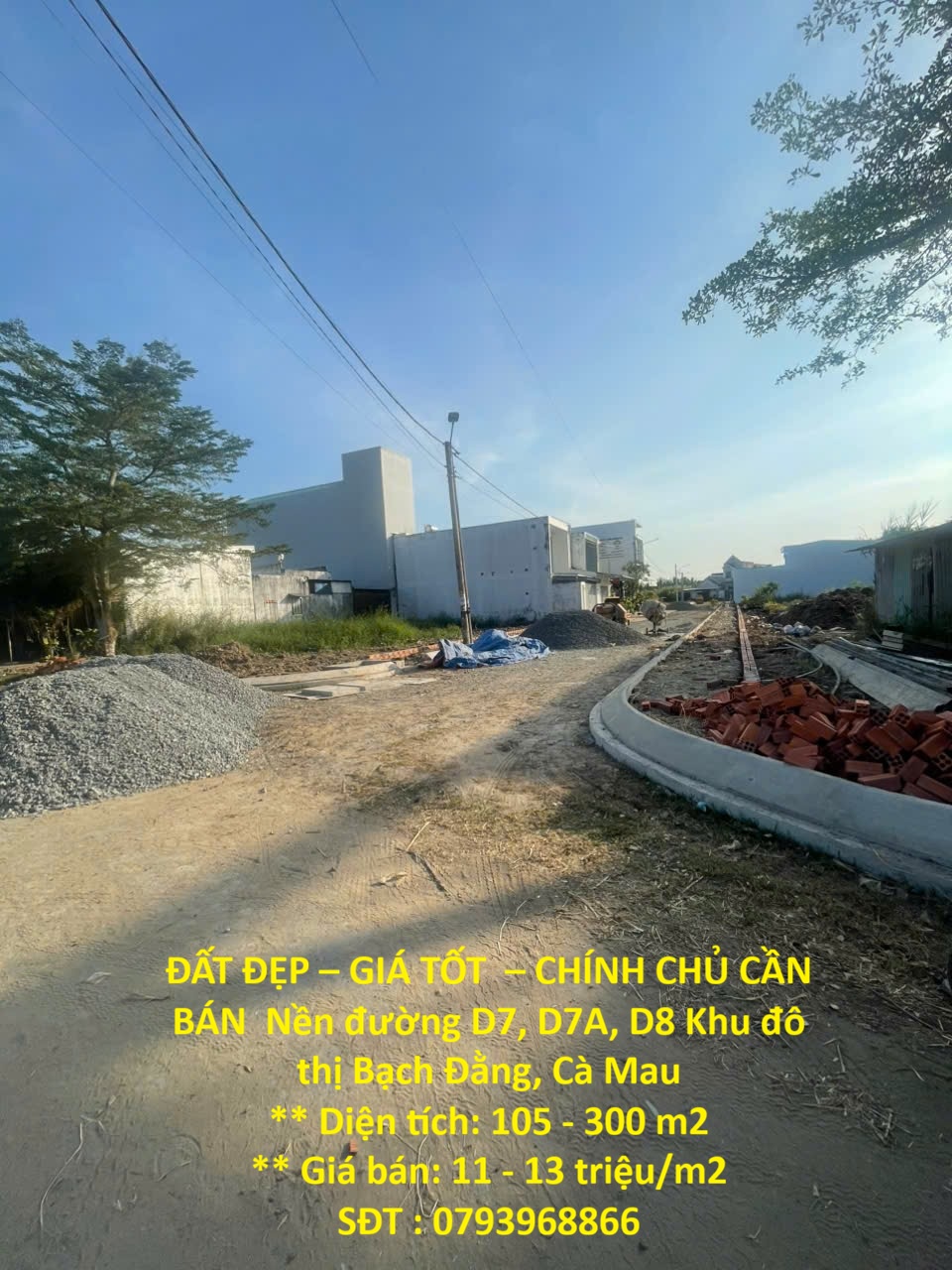ĐẤT ĐẸP – GIÁ TỐT  – CHÍNH CHỦ CẦN BÁN  Nền đường D7, D7A, D8 Khu đô thị Bạch Đằng, Cà Mau