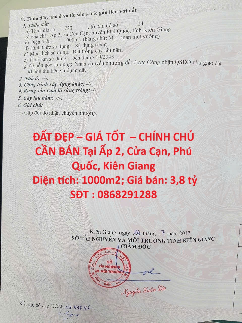 ĐẤT ĐẸP – GIÁ TỐT  – CHÍNH CHỦ CẦN BÁN Tại Ấp 2, Cửa Cạn, Phú Quốc, Kiên Giang