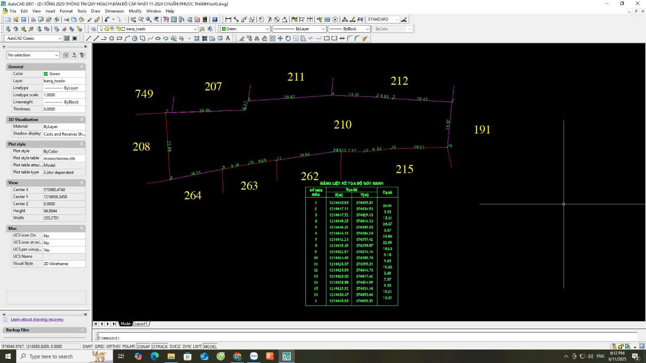 ** Diện tích: 1867m2 đất trồng cây hàng năm. Thửa đất 210. Tờ bản đồ số 45