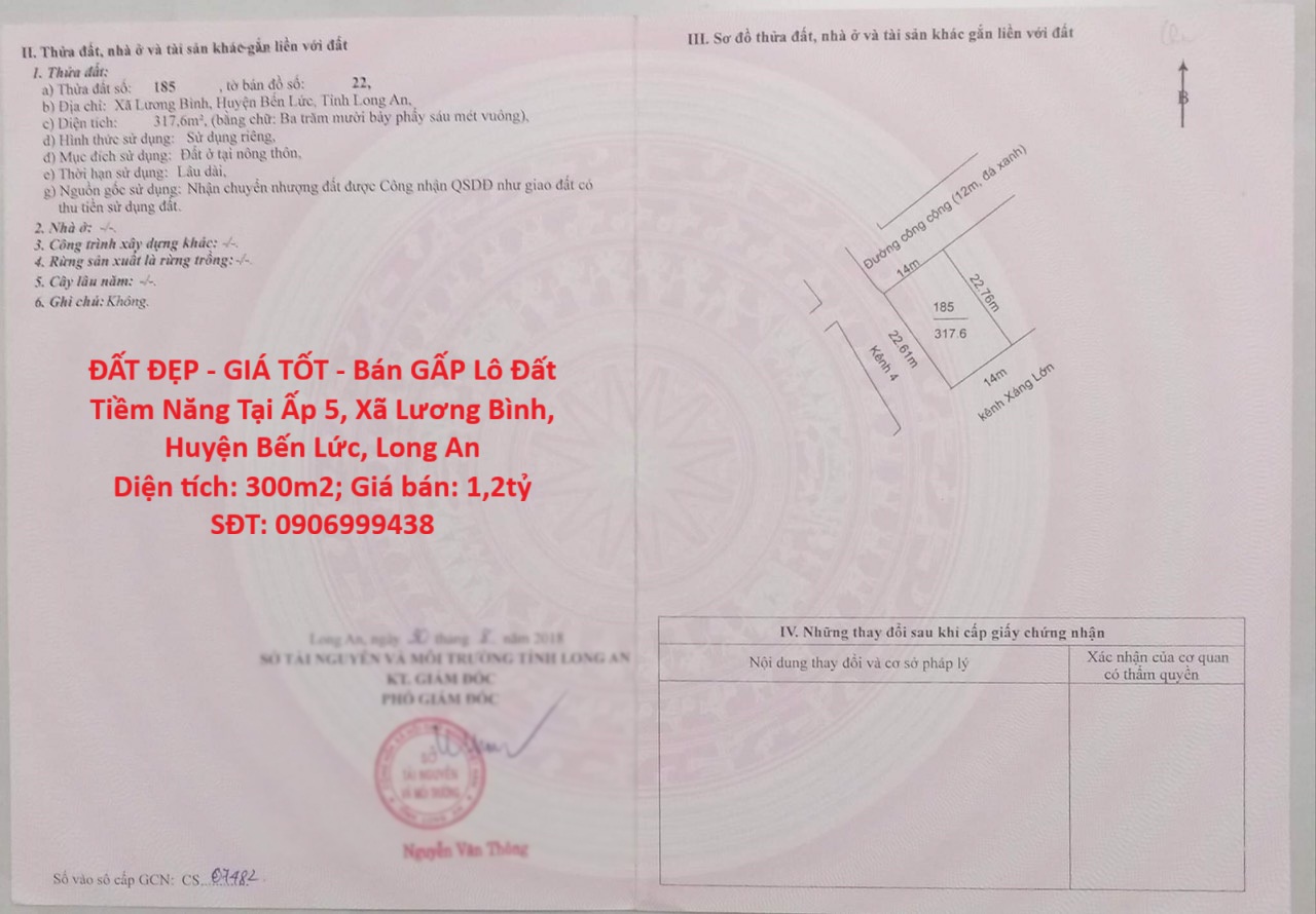 ĐẤT ĐẸP - GIÁ TỐT - Bán GẤP Lô Đất Tiềm Năng Tại Ấp 5, Xã Lương Bình, Huyện Bến Lức, Long An