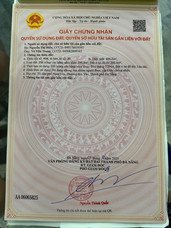 Diện tích : 400,8 m2. ( trong đó có 200m2 đất ở tại đô thị, 200,8m2 đất HNK), Ngang trên 13m.