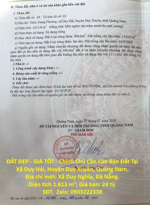ĐẤT ĐẸP - GIÁ TỐT - Chính Chủ Cần Cần Bán Đất Tại Xã Duy Hải, Huyện Duy Xuyên, Quảng Nam.