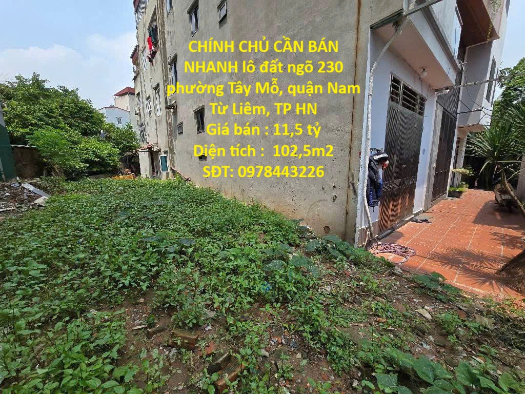 ĐẤT VỊ TRÍ ĐẸP- GIÁ TỐT CHÍNH CHỦ CẦN BÁN NHANH lô đất ngõ 230 Tây Mỗ, quận Nam Từ Liêm, HN