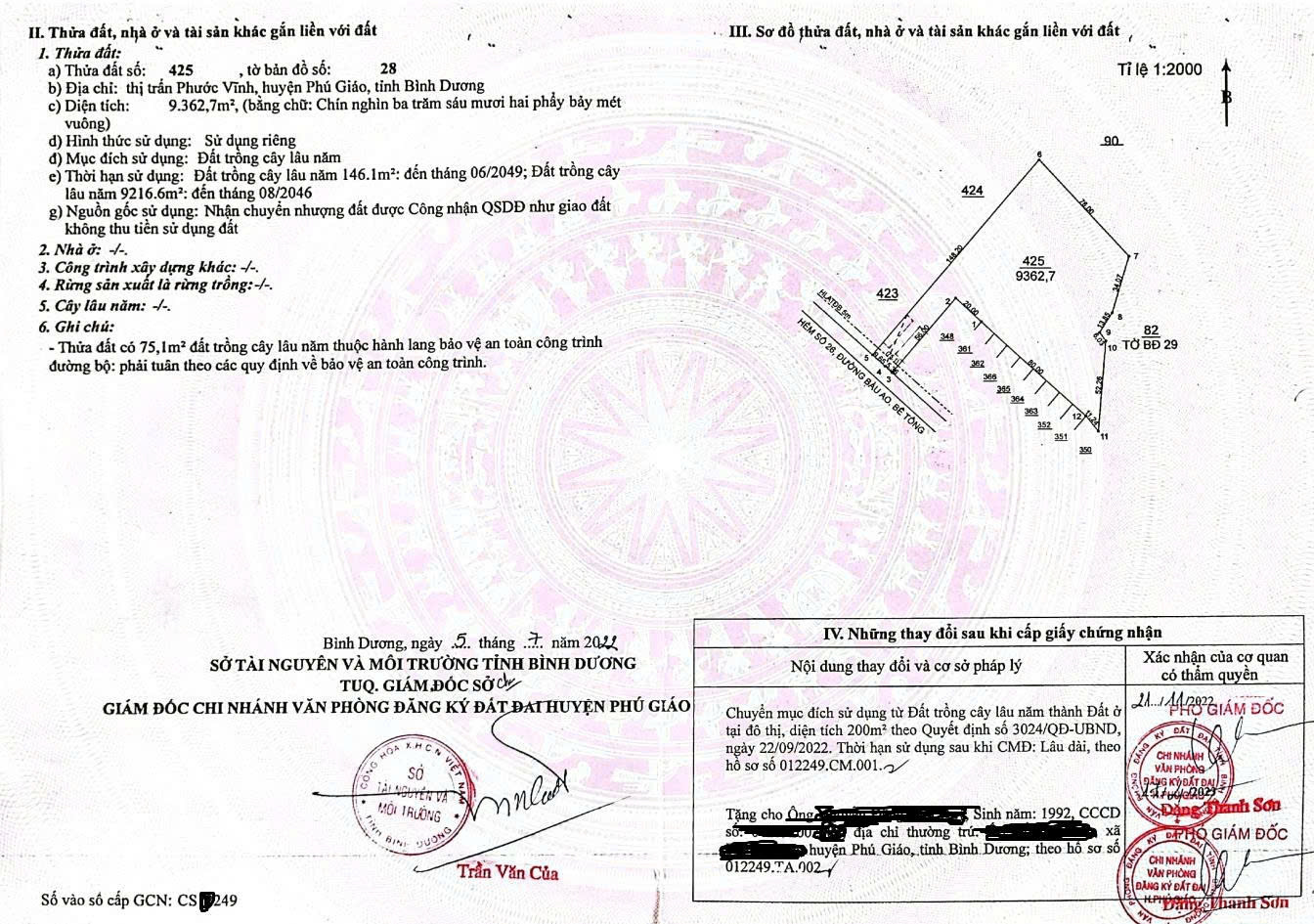 Diện tích : 9362,7m2 (15m mặt tiền, sẵn 200m2 thổ cư)