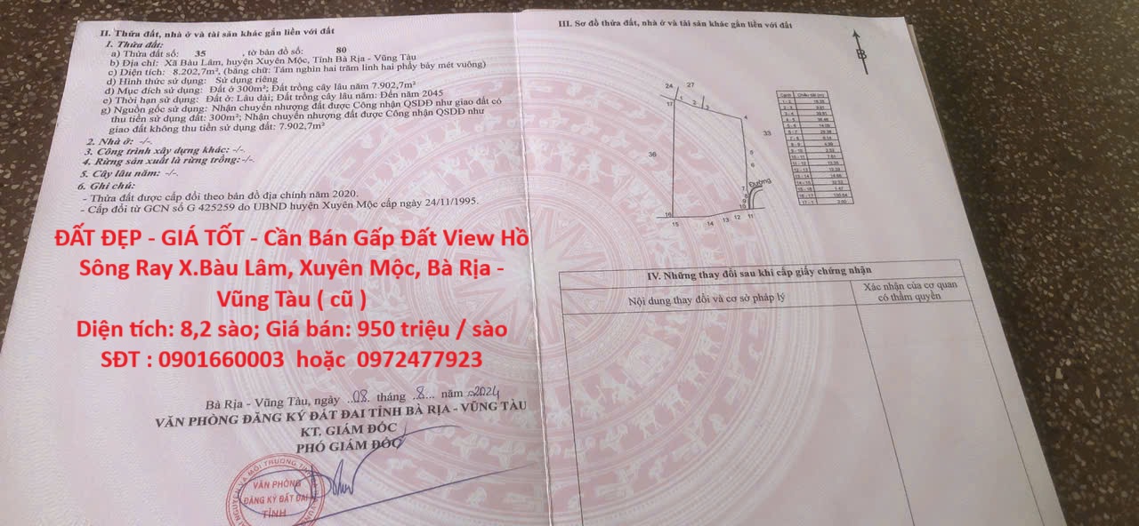 ĐẤT ĐẸP - GIÁ TỐT - Cần Bán Gấp Đất View Hồ Sông Ray X.Bàu Lâm, Xuyên Mộc, Bà Rịa - Vũng Tàu ( cũ )
