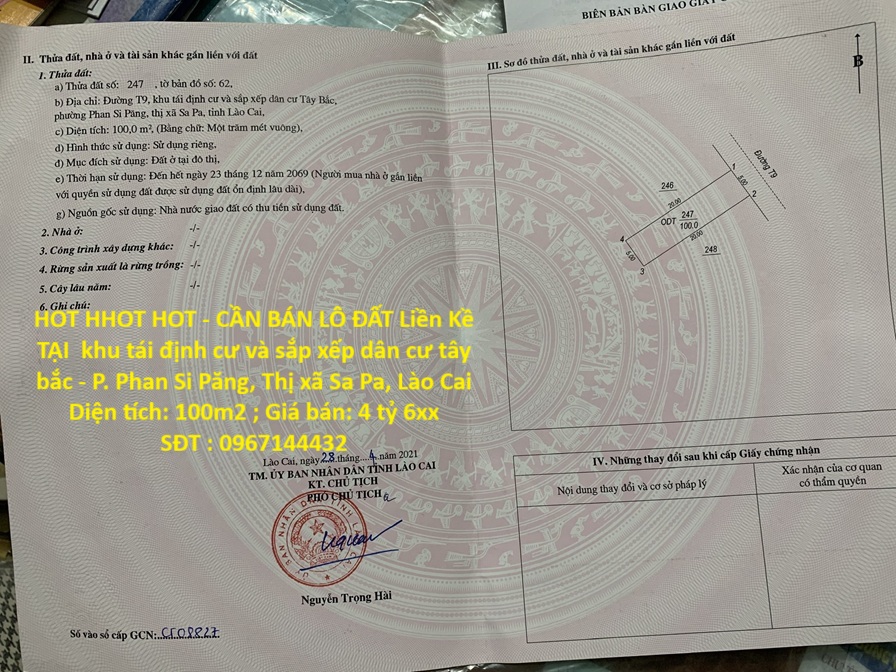 HOT HHOT HOT - CẦN BÁN LÔ ĐẤT Liền Kề TẠI Phường Phan Si Păng, Thị xã Sa Pa, Lào Cai