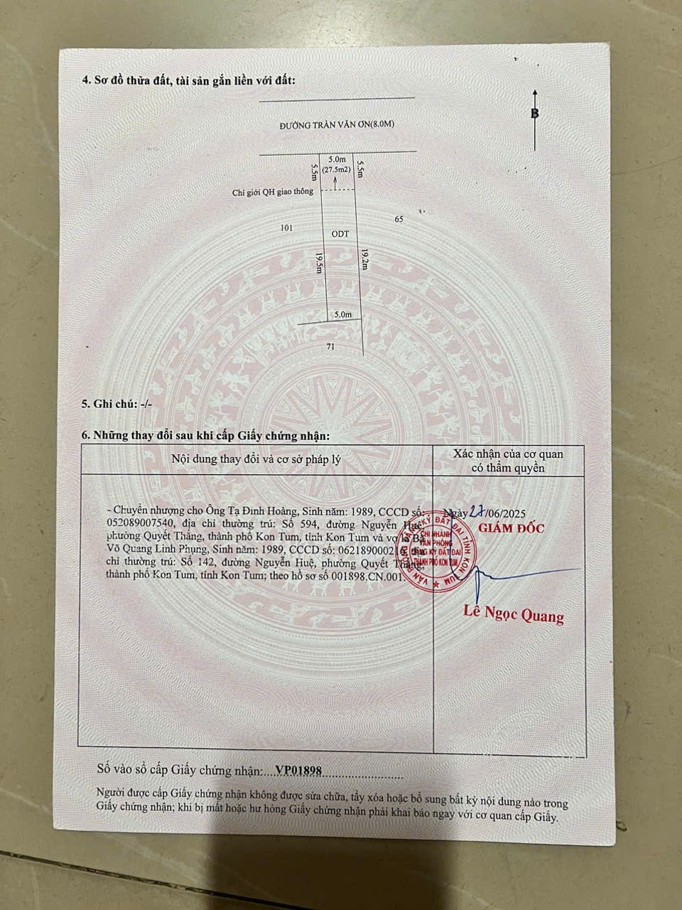 Vị trí : mặt tiền Trần Văn Ơn, P Kon Tum, Tỉnh Quảng Ngãi.