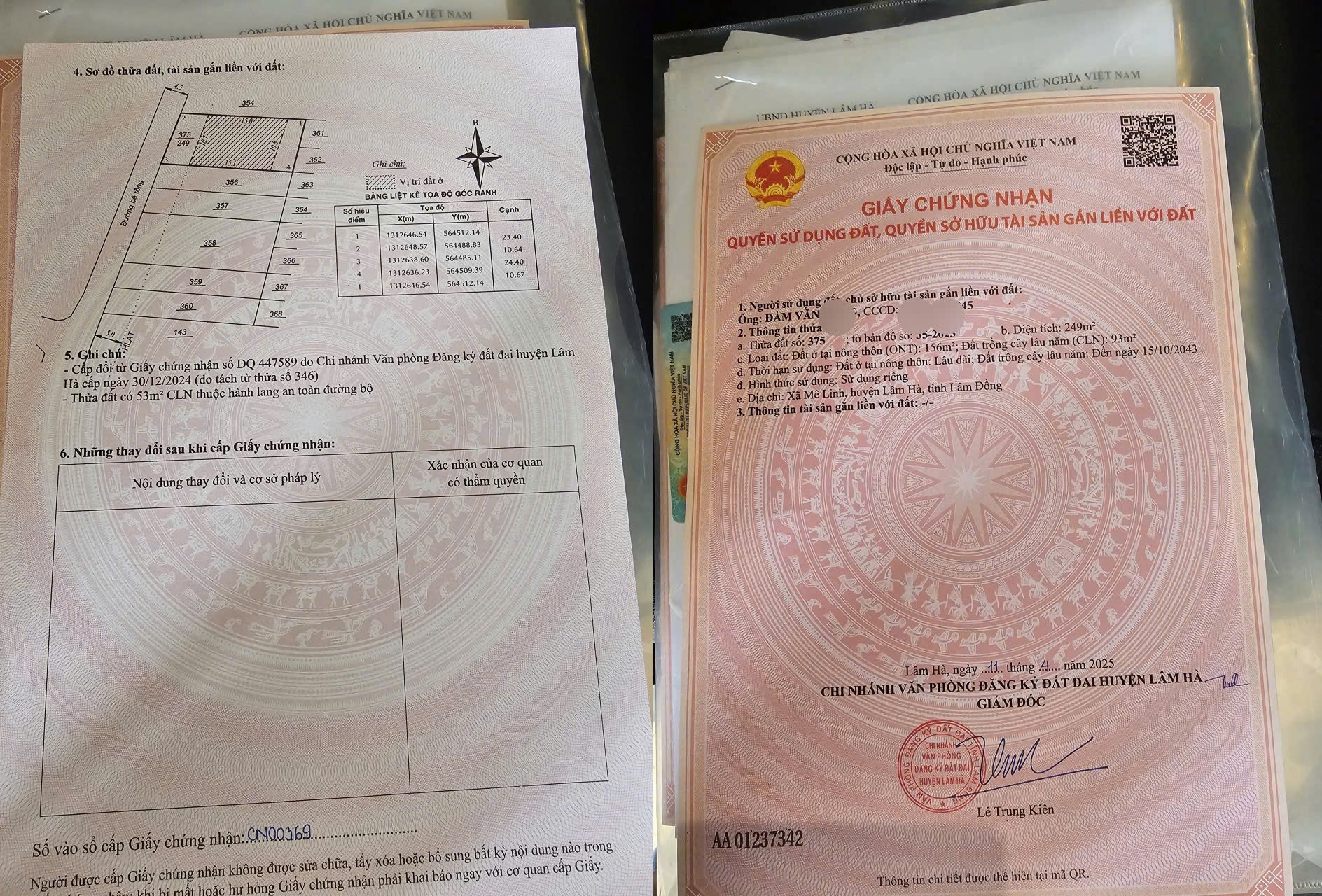 - Diện tích: 249m2. Thổ cư 156m2